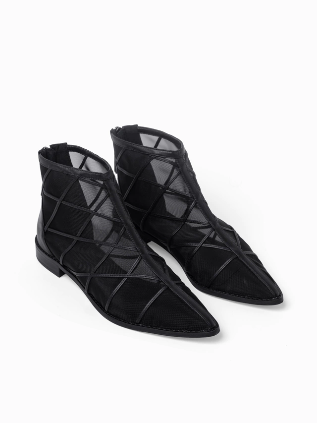 Apresentamos a Bota Salomé! Escolha esse modelo para incorporar autenticidade ao seu visual. Ela é confeccionada em tela mesh com aplicação de tiras de couro, além do envolvente bico fino, que oferece uma dose extra de estilo e sofisticação. Possui tiras aplicadas que adornam toda a extensão da bota. O fechamento se dá por ziper com puxador em couro na calcanheira, o que facilita muito o calce sem apertar ou marcar a lateral da bota. Uma escolha assertiva para quem busca sofisticação, sem abrir mão do refinamento.